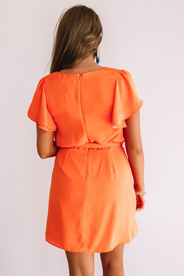 The persimmon colored 'Venture To The Venue' dress is perfect for wearing when it's wine o'clock and you are headed out for a night with your besties! It features a wrapped front with a v-neck, short loose sleeves, a zip up back, straight fit skirt, and an elastic waistband with a tie belt!