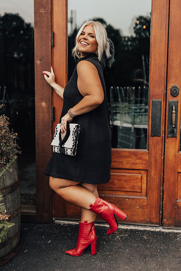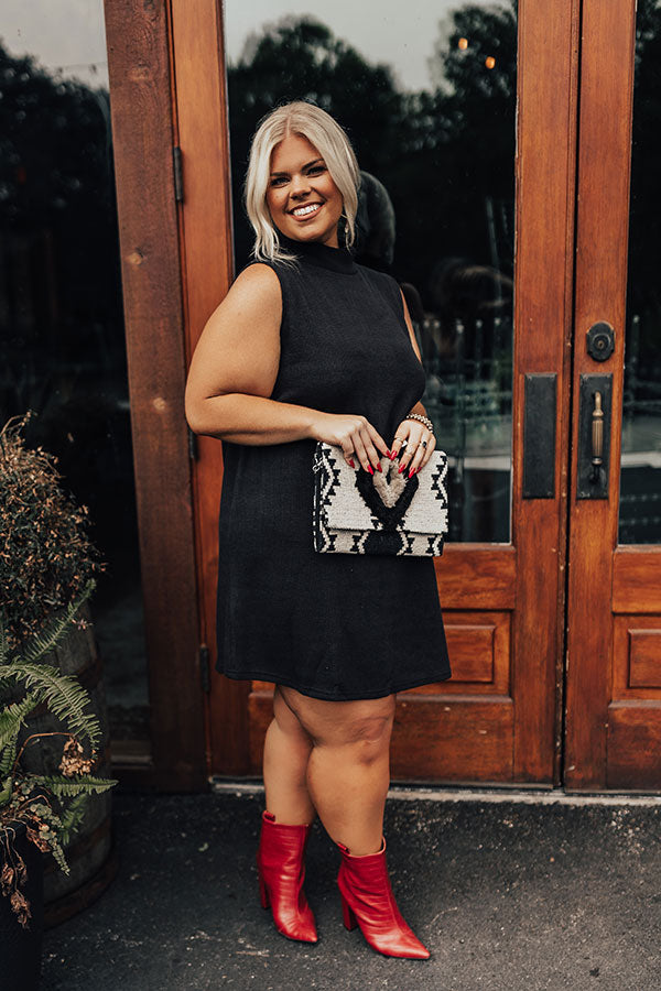 Plus Size - - May all your fall style wishes come true with this cute black shift dress featuring soft lightweight and flowy material with subtle ribbed texturing, a high rounded neckline, wide sleeveless shoulder straps, and a relaxed silhouette that ends in a straight mid-thigh length hemline!