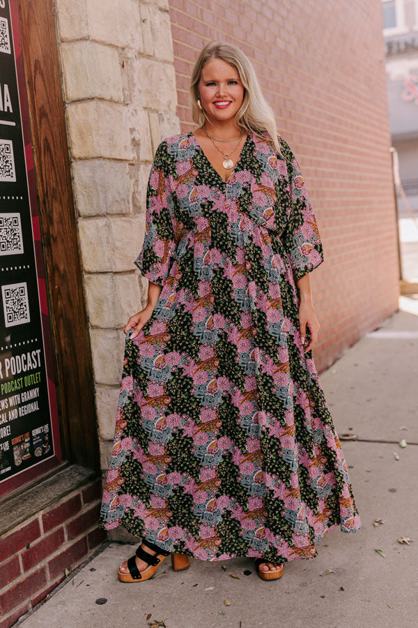- A flowy yet flattering silhouette that ends in a straight maxi length hemline