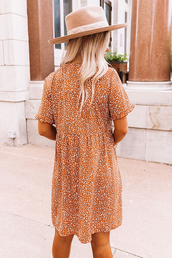 You are sure to have a wonderful weekend when you wear this adorable dress featuring lightweight flowy material patterned with a small white print, a button down front with a v-cut neckline, short loose sleeves with dainty trim detailing, front accent pockets, and a relaxed silhouette that falls into a rounded mid-thigh length hemline!