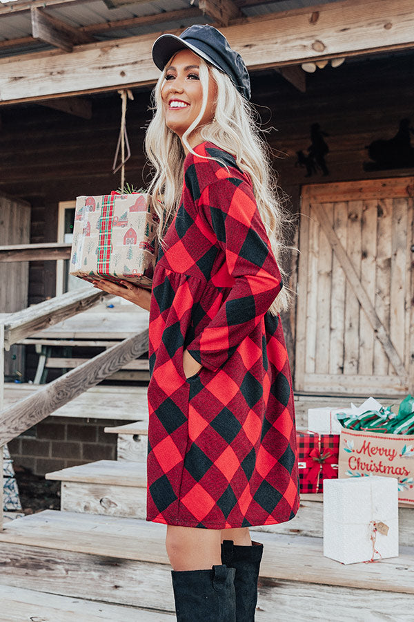 YuleTide Cheer Buffalo Check Babydoll Dress