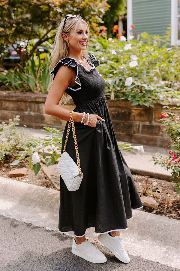 Mimosa Mingle Smocked Midi in Black