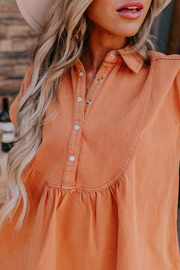 Autumn Treasure Denim Mini Dress In Pumpkin