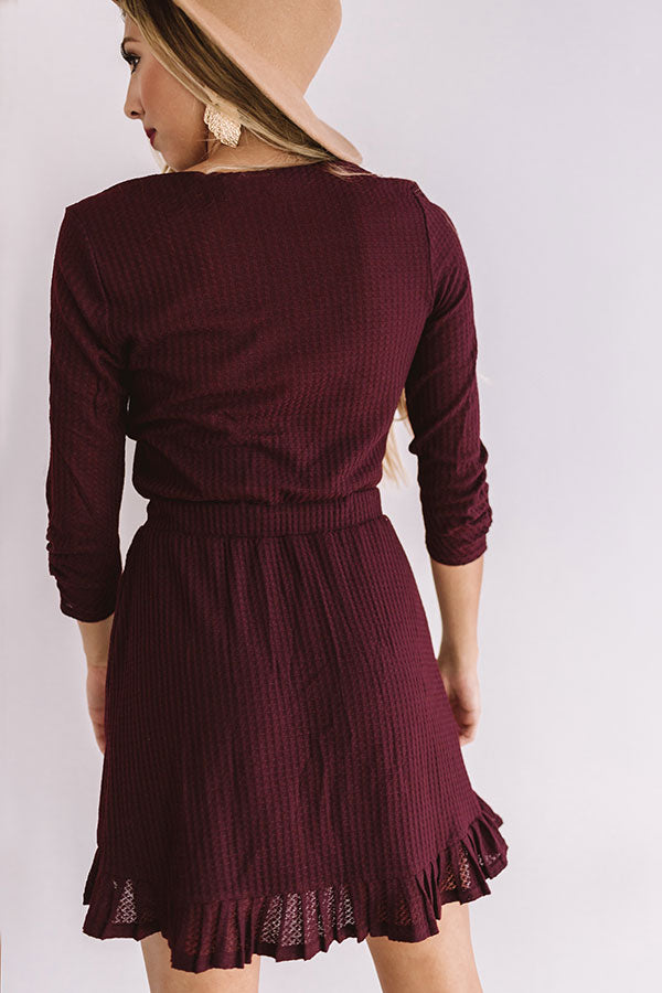 Autumn's Kiss Waffle Knit Dress in Windsor Wine