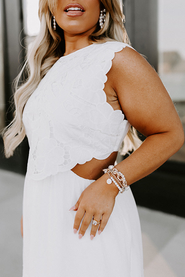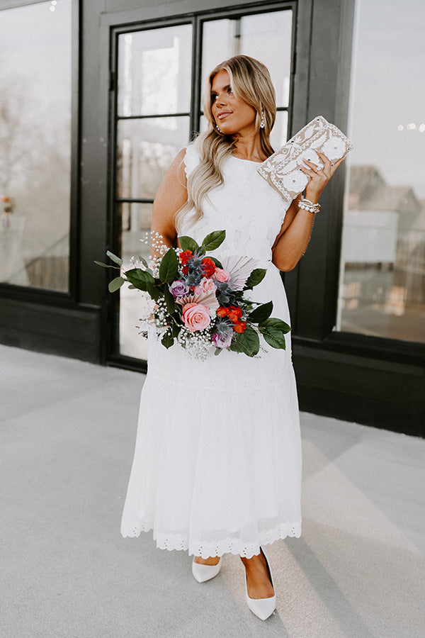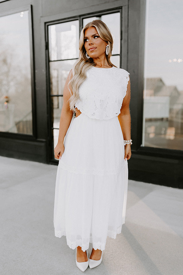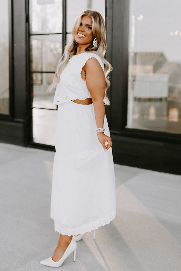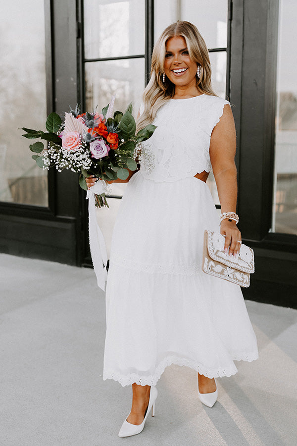 - Flattering silhouette that ends in an midi length scalloped hemline with embroidered detail
