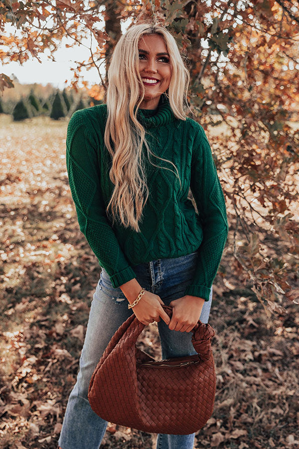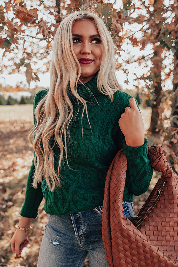 Catchup Over Coffee Cable Knit Sweater in Hunter Green