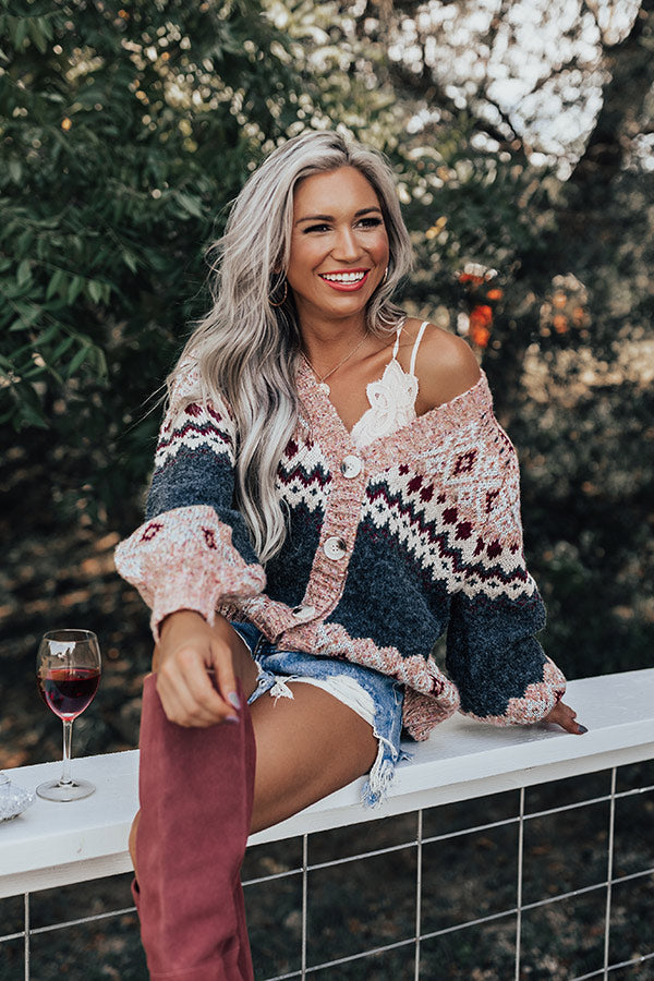 Snuggle up in our stylish 'Cider Falls' sweater featuring soft knit material with a charcoal, wine, and natural hued argyle pattern, a button down front with a v-cut neckline, oversized long sleeves, and a slouched silhouette that falls into a straight hemline! Measurements