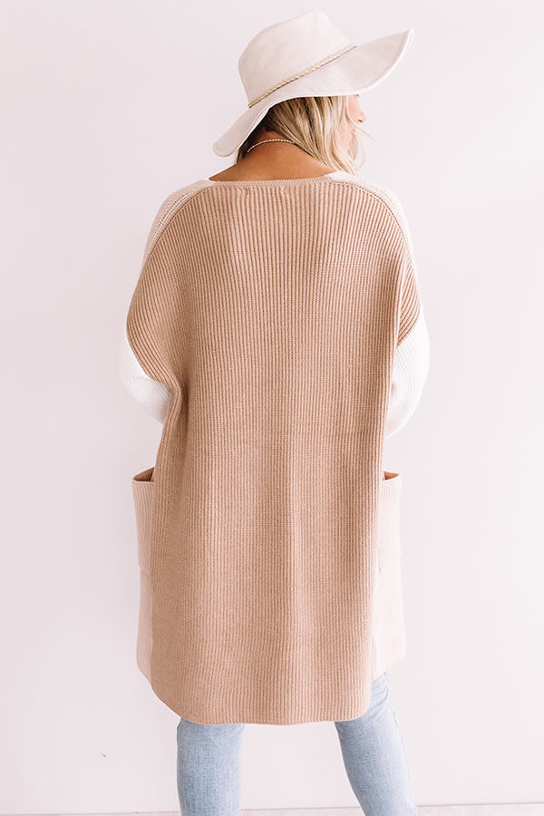 You will be crushing the style game fro "coast to coast" when you wear this warm cardigan featuring lightweight tight knit material with subtle ribbed texturing, neutral color block panels long loose sleeves with flared rolled cuffs, two low accent pockets, and a relaxed silhouette that falls into a straight knee-length hemline! You can style this versatile piece with just about anything from a basic tank to a sweater, jeans to dresses, wedges to sandals, clutches to totes, and hats to earrings!