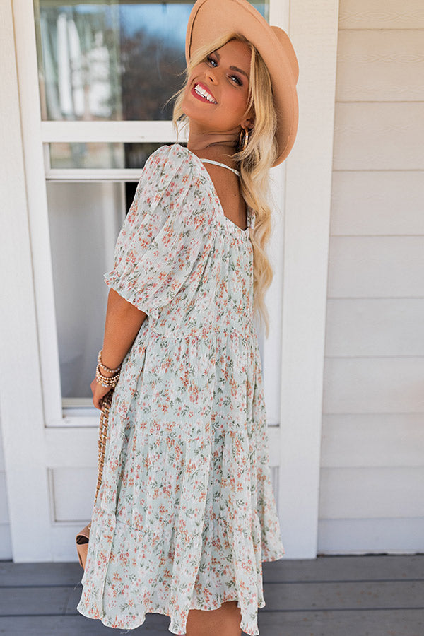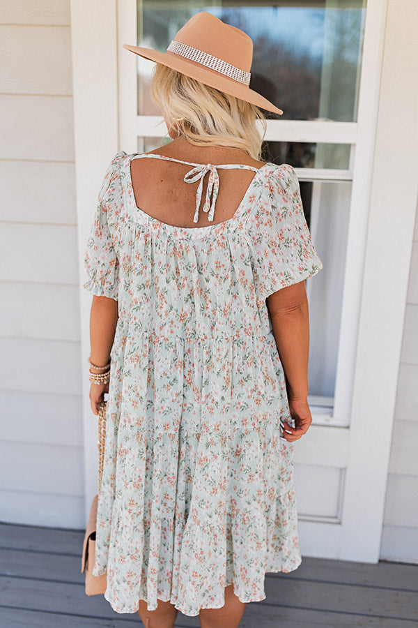 Showcase your courage within in this beautiful plus size midi dress featuring lightweight breezy material patterned with a small green and peach hued floral print, a square neckline and upper back with a tie closure, short sleeves, and a relaxed tiered silhouette that falls into a straight mid-calf length hemline!