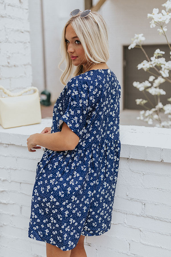 Dance It Out Floral Babydoll Tunic Dress In Navy