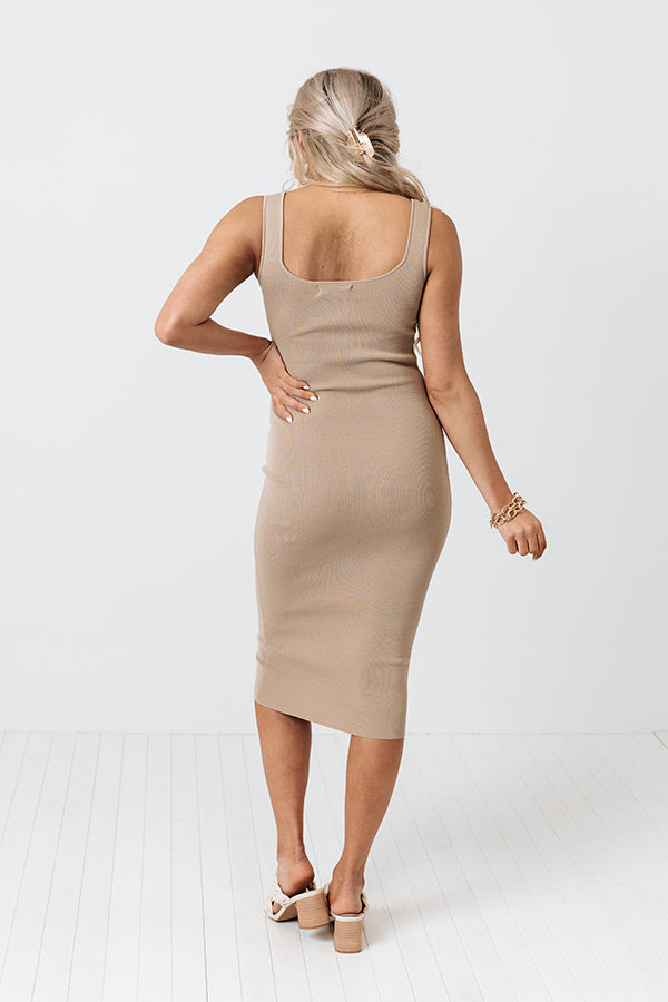 Easy Come, Easy Go Ribbed Midi In Taupe