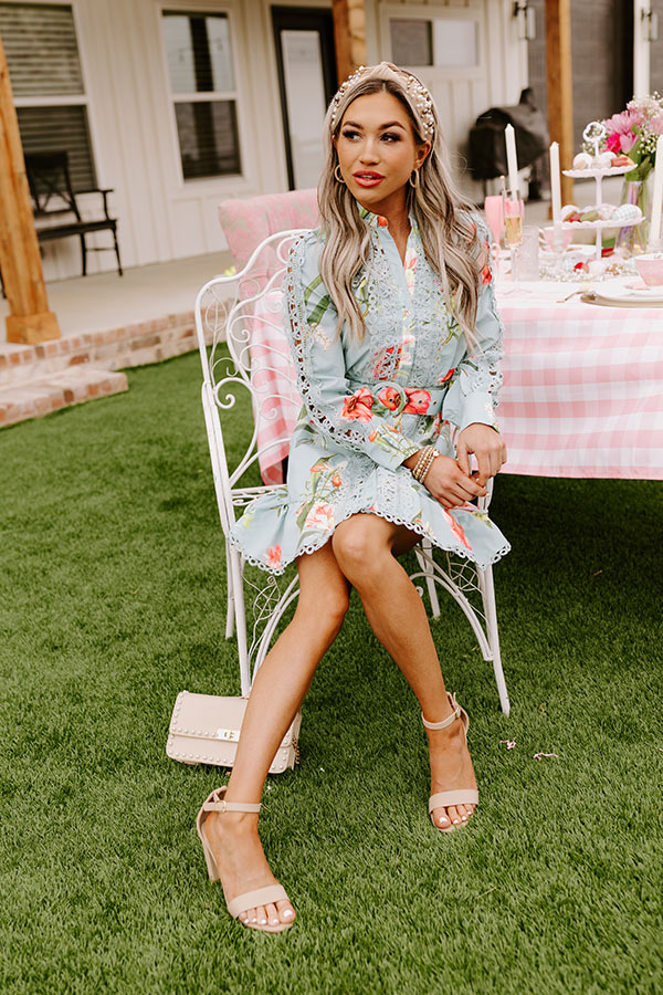 - A relaxed skirt silhouette that falls into a ruffled mid-thigh length hemline