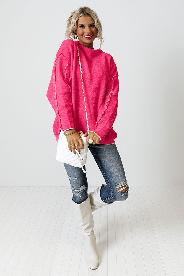 It's an add to cart kind of day, so treat yourself to our charming hot pink 'Haute Tea' sweater featuring ultra soft lightweight chenille material, a high neckline, long loose sleeves with fitted cuffs that can be rolled and exposed accent seams, and an ultra slouched silhouette that falls into a straight ribbed hemline!