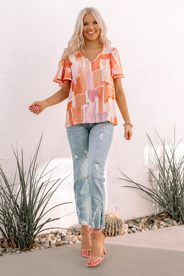 Step out in color with our pretty 'Sweetest Moment Shift Top' featuring lightweight material patterned with a lavender and coral hued geometric print, a v-cut neckline, short flowy sleeves, and a relaxed silhouette that falls into a straight hemline!