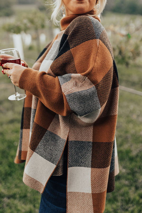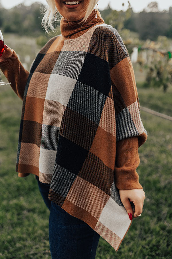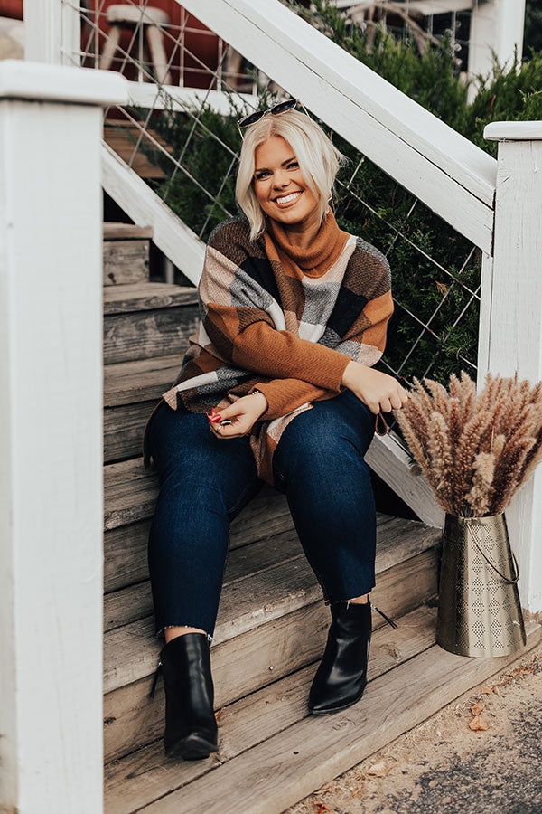Plus Size - Kiss the hot summer weather goodbye with this adorable shift sweater featuring soft tight knit material with white, black, and camel hued color block patches, a bunched turtle neckline, long loose sleeves, and a slouched silhouette that falls into a straight hemline with accent side slits! Measurements