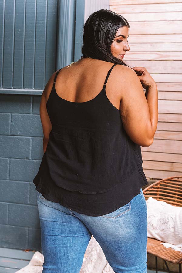 Plus Size - The spotlight is sure to be on you during girl's night when you arrive in style with this charming black shift tank featuring sleek lightweight material, a v-cut neckline with intricate lace trim detailing, adjustable spaghetti straps, and a relaxed silhouette that falls into a rounded hemline! Measurements