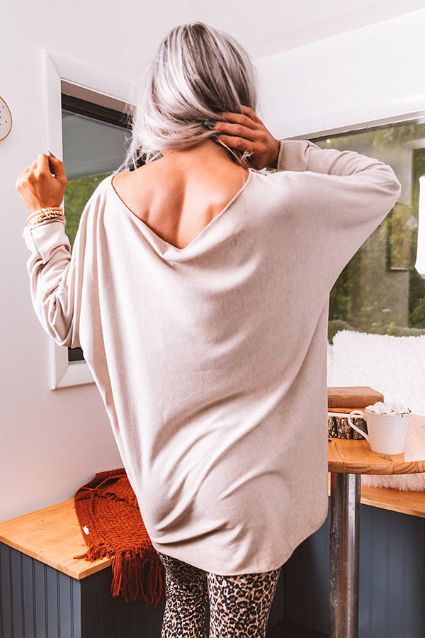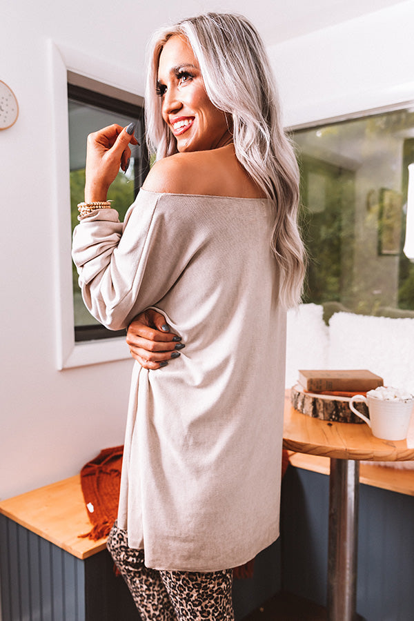 Take on all your fall adventures in style with our casual cute birch colored "Road Trip To Lake Tahoe Shift Top" featuring soft lightweight material, a wide rounded neckline that can be worn off one shoulder, long loose sleeves, and a relaxed silhouette that falls into a rounded hemline! Measurements