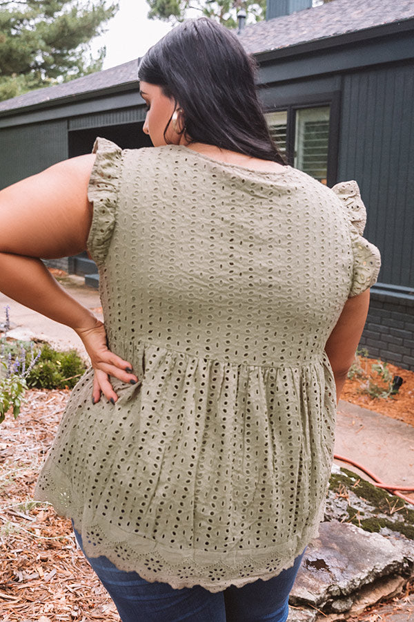 Sugar Pie Babydoll Eyelet Top In Sage Curves
