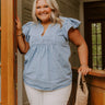 Farmers Market Cutie Embroidered Chambray Top in Light Wash Curves