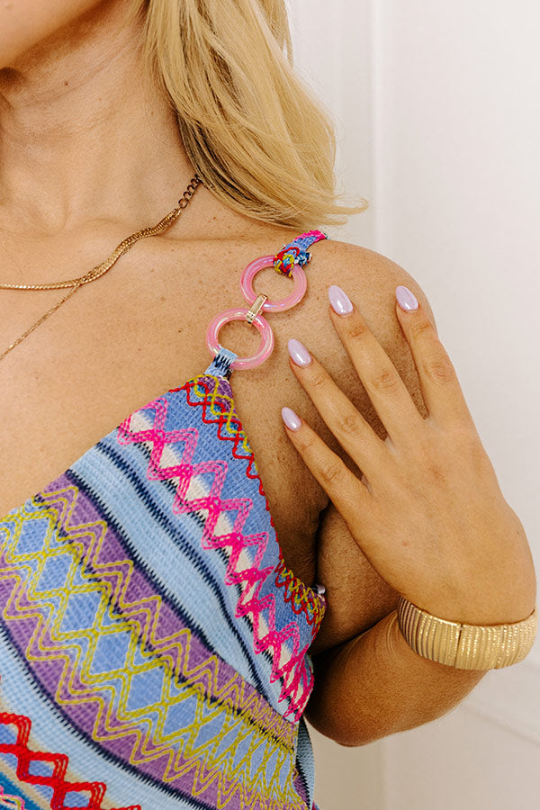 - Adjustable spaghetti straps with pink iridescent hoop accents