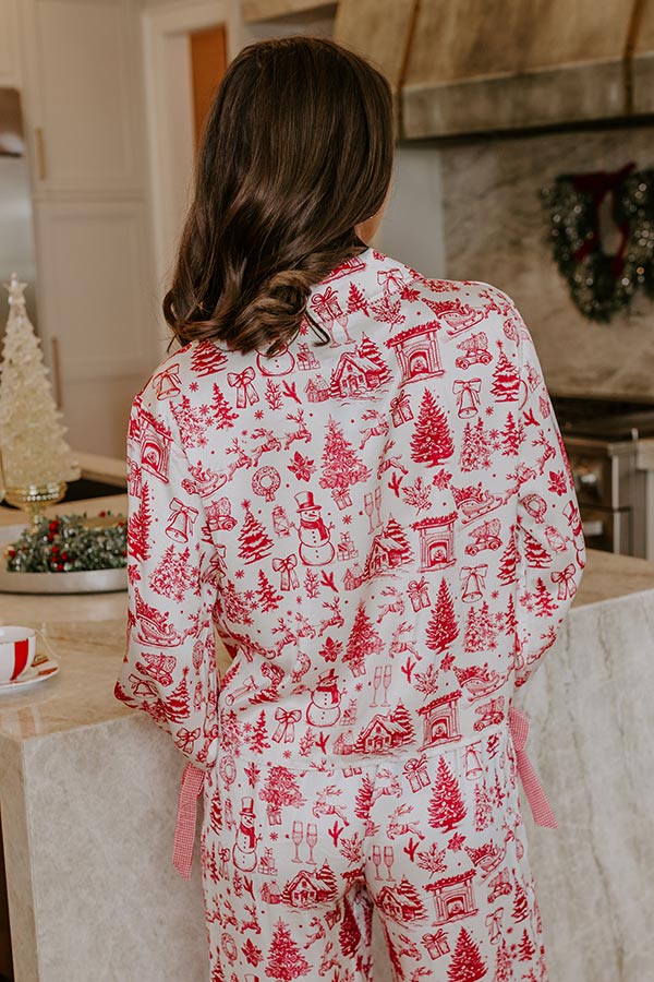 - Get into the Christmas spirit with this darling satin pajama top! Perfect for cozy holiday nights, its festive design makes it a must-have for your seasonal sleepwear collection.