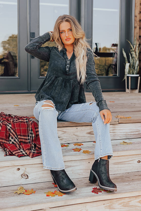 - Add a trendy twist to your fall wardrobe with this adorable waffle knit top! Whether you're heading out on a coffee run or enjoying a fall festival, this super-cute piece brings a playful vibe to any outfit.