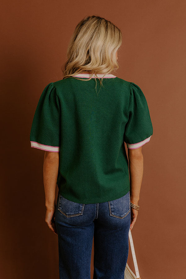 - Add a dose of sweetness to your everyday look with this knit top! Its scalloped trim and rosette buttons bring effortless charm to elevate your casual style.
