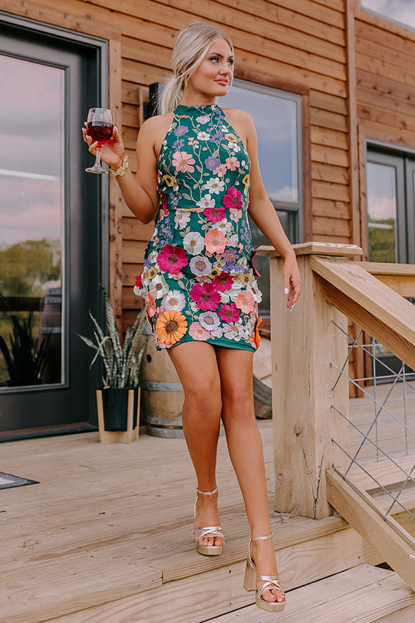 Sunshine Villa Embroidered Mini Dress in Hunter Green
