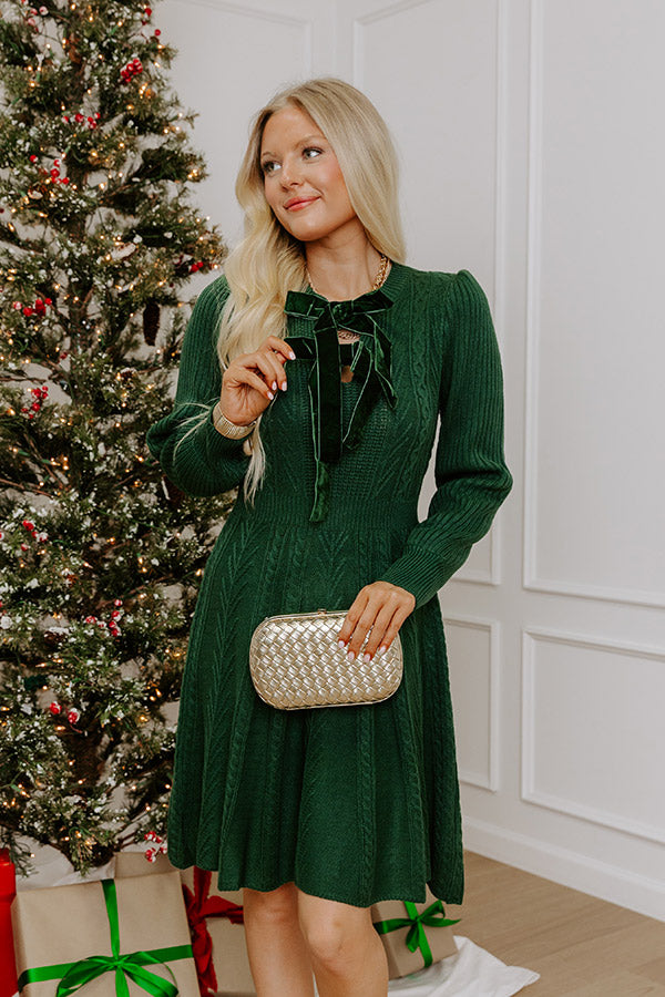 Holiday Muse Cable Knit Sweater Mini Dress in Hunter Green