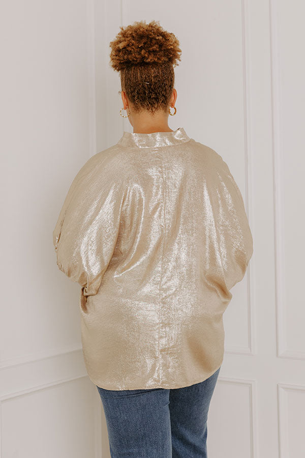 - Bring a bold vibe to your style with this fabulous top! Its metallic finish and trendy oversized silhouette make it the perfect piece to elevate your OOTD.
