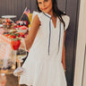 - A relaxed shift dress silhouette that ends in a ruffled mini dress length hemline