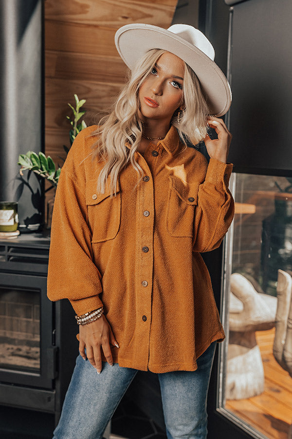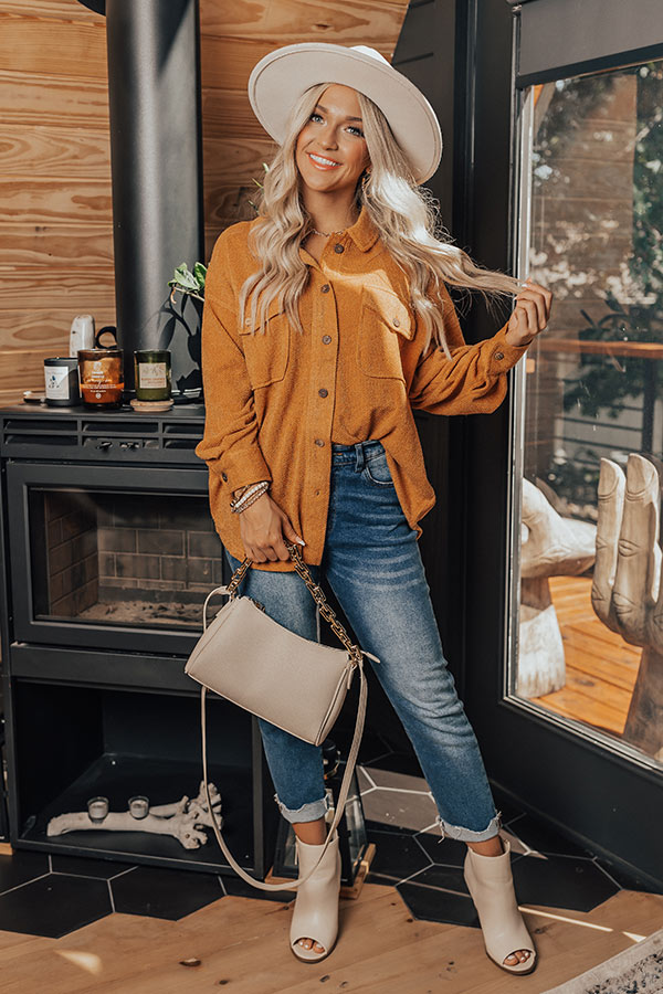 Live your best life with our 'Pumpkin Spice'! Features a soft knit material, a collared neckline, long sleeves with wooden button closures on the cuffs, down the front and on the two flap chest pockets, and a feminine silhouette that falls into a round hemline.