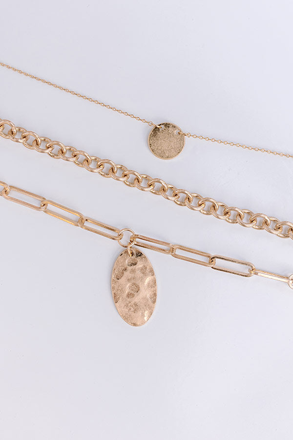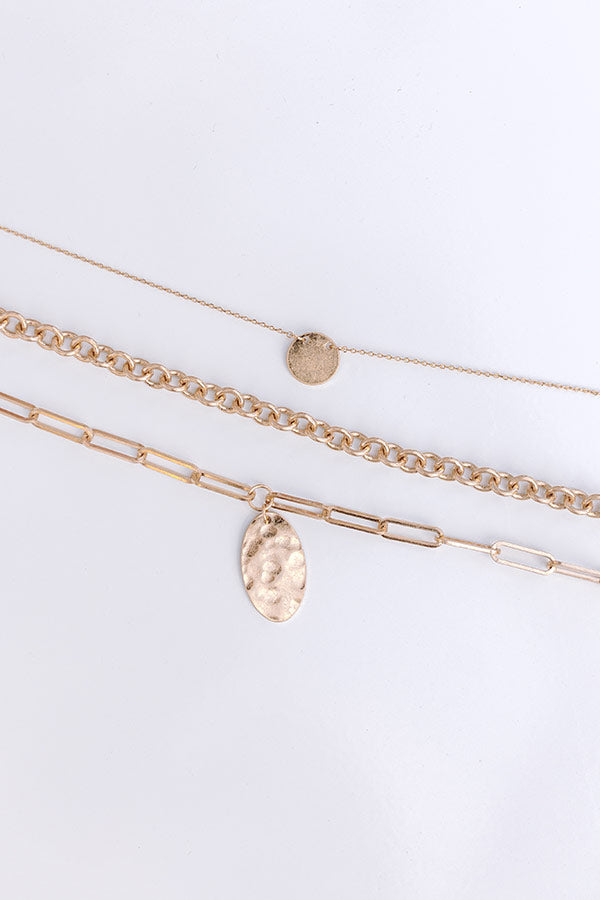 - Pop on a layer of luxe style with this trendy necklace! Its layered design with different styles of chains make it perfect for elevating your OOTD.