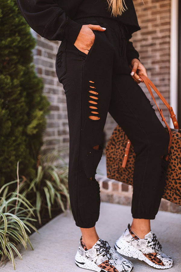 A Little Chilly Distressed Joggers In Black