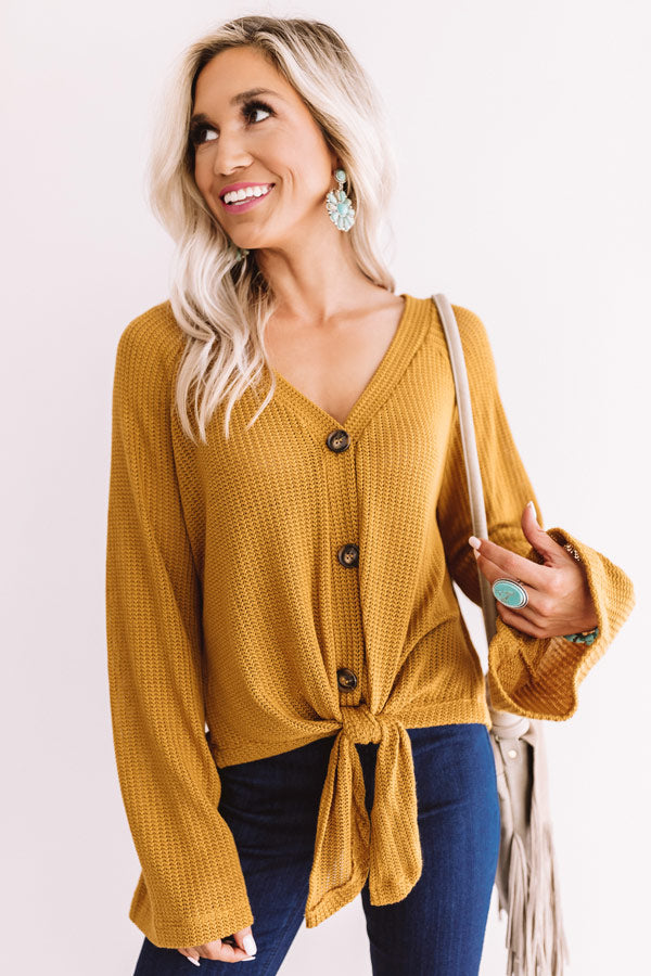 A Wonderful Life Knit Tie Top In Mustard