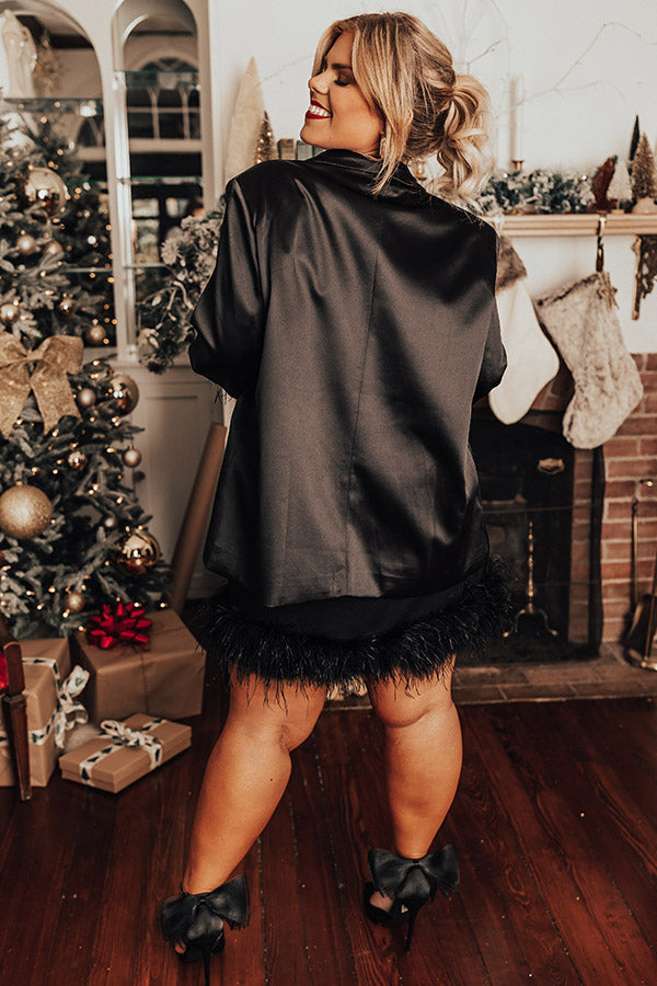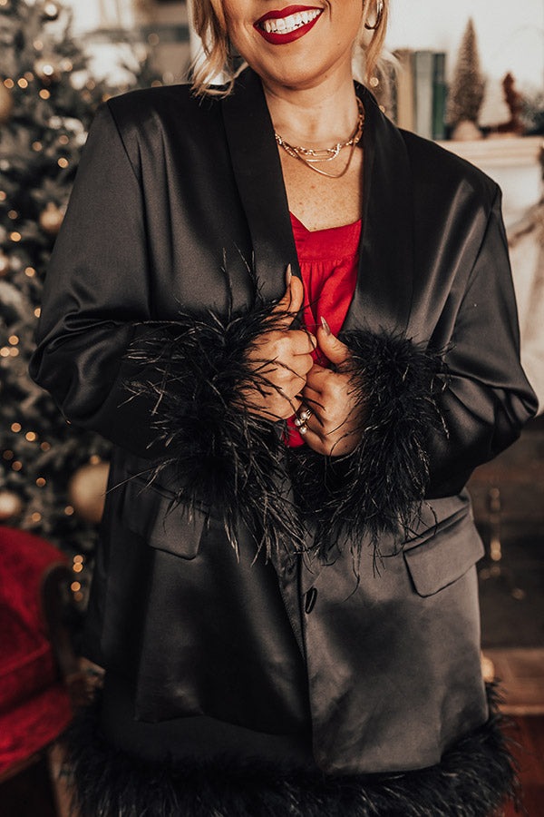 We have no doubt you will look absolutely fabulous in this black plus size blazer featuring sleek lightweight material, long loose sleeves with feather trim cuffs, a collared neckline, a single button closure in the front, two accent pockets, and a flattering silhouette that ends in a straight hemline!