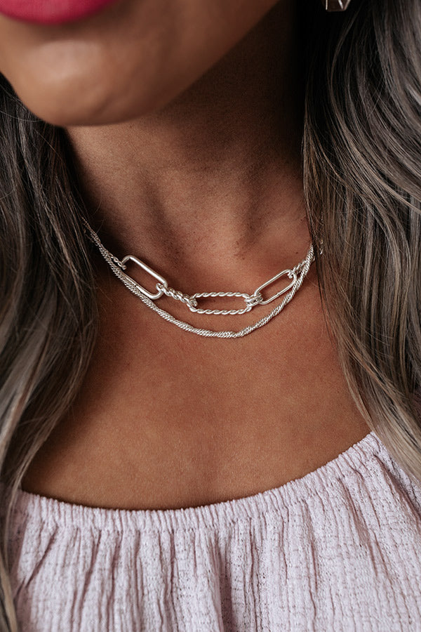 People are sure to notice how adorable your jewelry style is when you accessorize with our silver 'Abundant Flow' necklace featuring a dainty twisted chain and a large link chain!