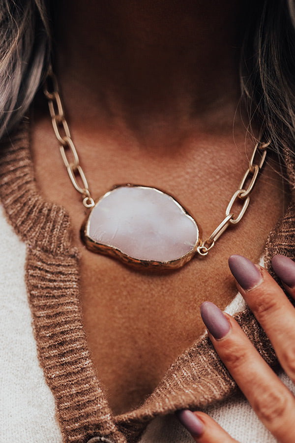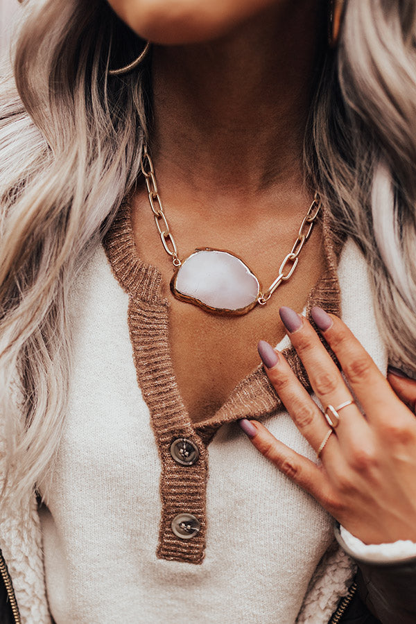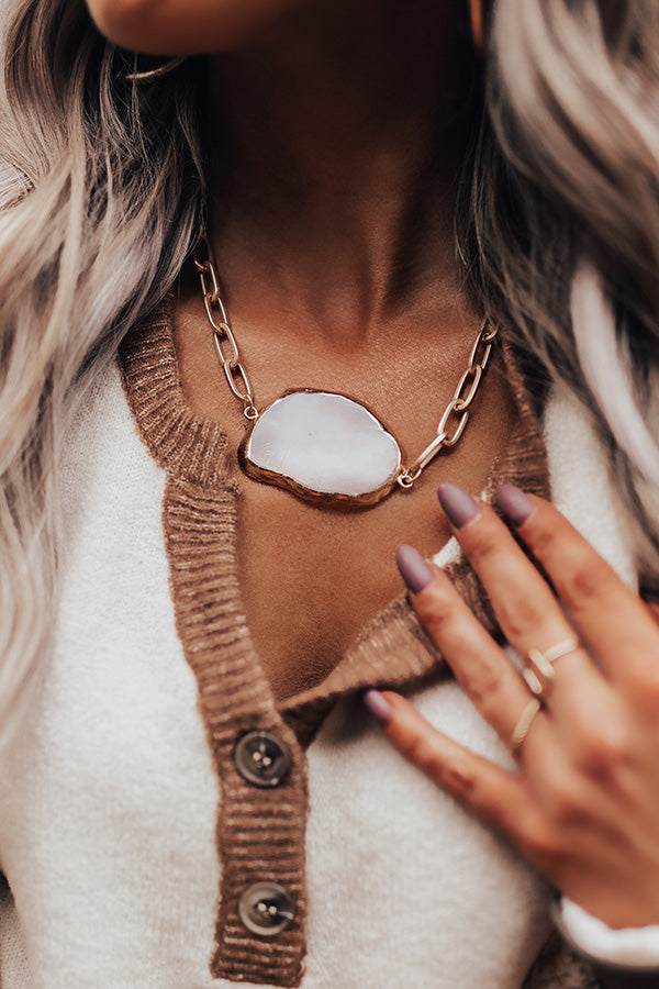 All eyes are sure to be drawn to our beautiful 'Across The Coast Necklace' featuring a large gold link chain with an oversized grey stone pendant! Due to the natural stone there may be some variations in color, shape, or size.