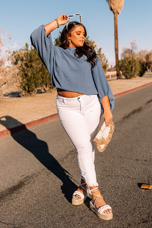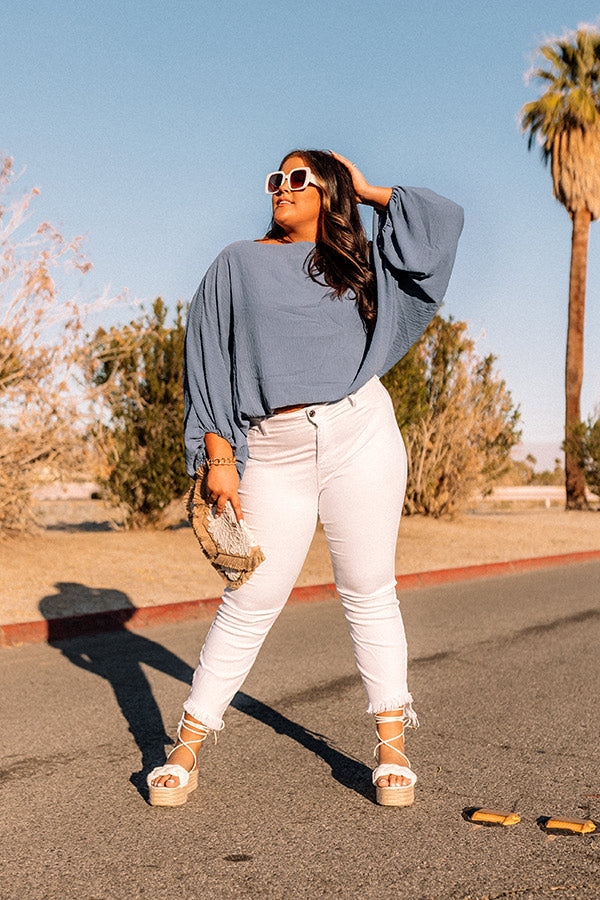 Stay simple but stylish in our basic riverside colored plus size 'Across Your Heart Shift Top' featuring lightweight material, a rounded neckline, long oversized bubble sleeves, and a slouched silhouette that falls into a straight hemline!