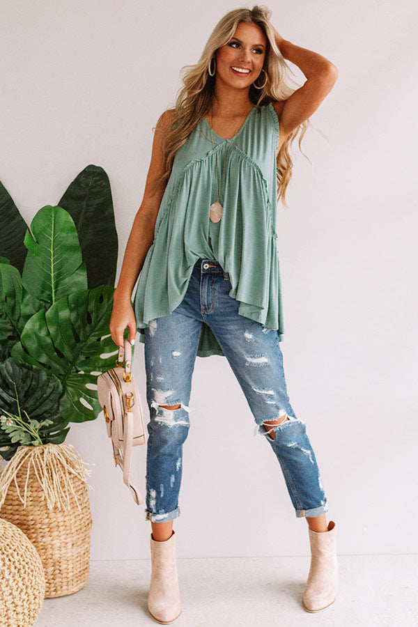This hue is totally YOU! Our pear colored "Adley" shift tank features lightweight material, a v-cut neckline, wide 3-inch shoulder straps with ruffled trim detailing, and a relaxed babydoll silhouette that falls into an uneven hemline! You can style this piece a variety of ways, like with some distressed skinnies and a neutral bootie and crossbody, or it can be worn with some frayed white shorts, "The Brighton Espadrille in Taupe," and our "Plans In Paris Wool Hat in Taupe" for multiple "casual cute" looks that are perfect for all of your afternoon plans! Measurements