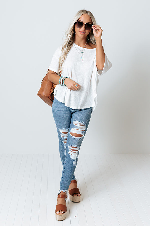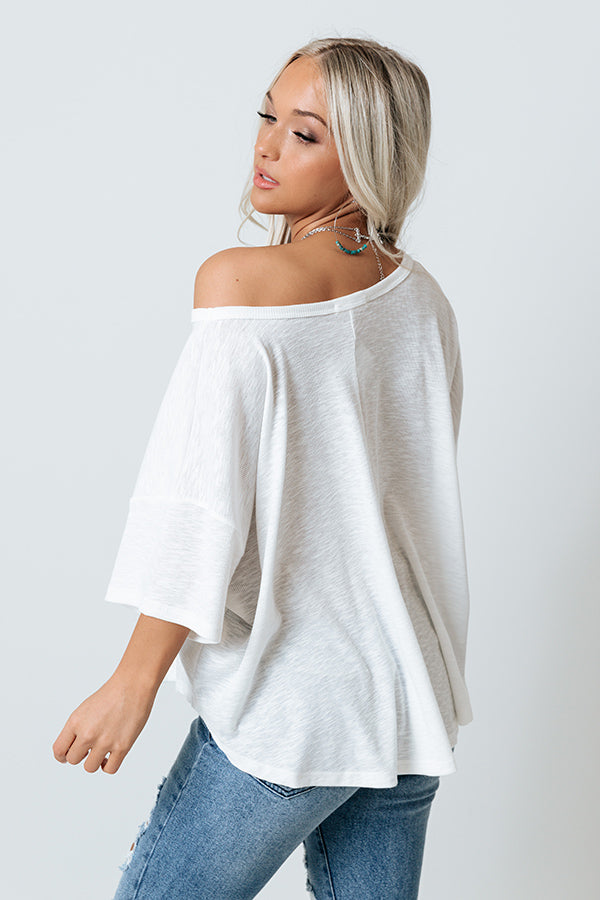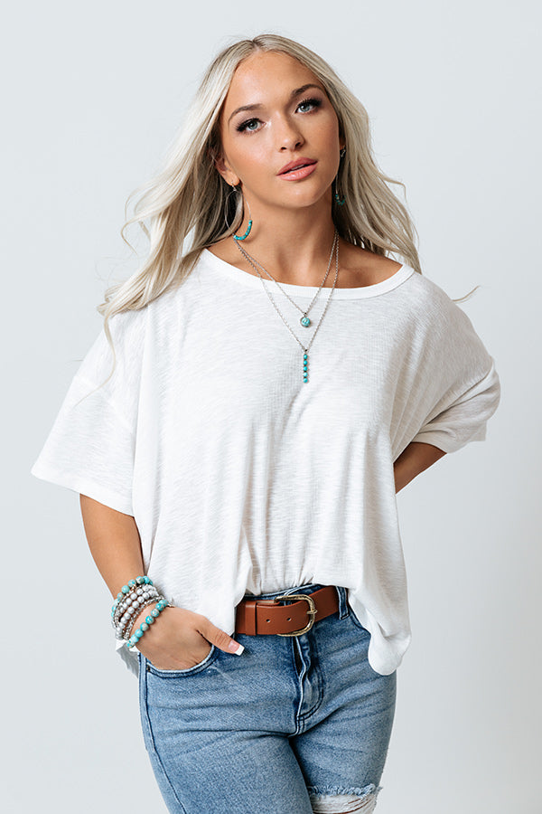 You are sure to look adorable in this basic white shift tee featuring soft lightweight flowy material, a wide neckline, oversized short sleeves, and an ultra slouched silhouette that falls into a rounded hemline! Measurements