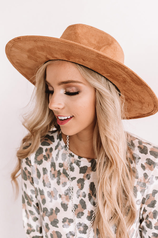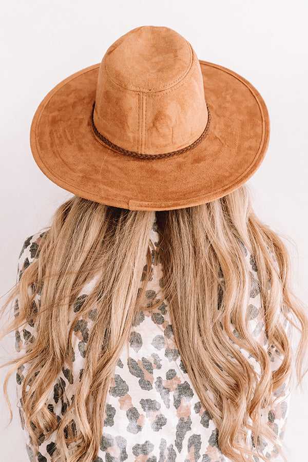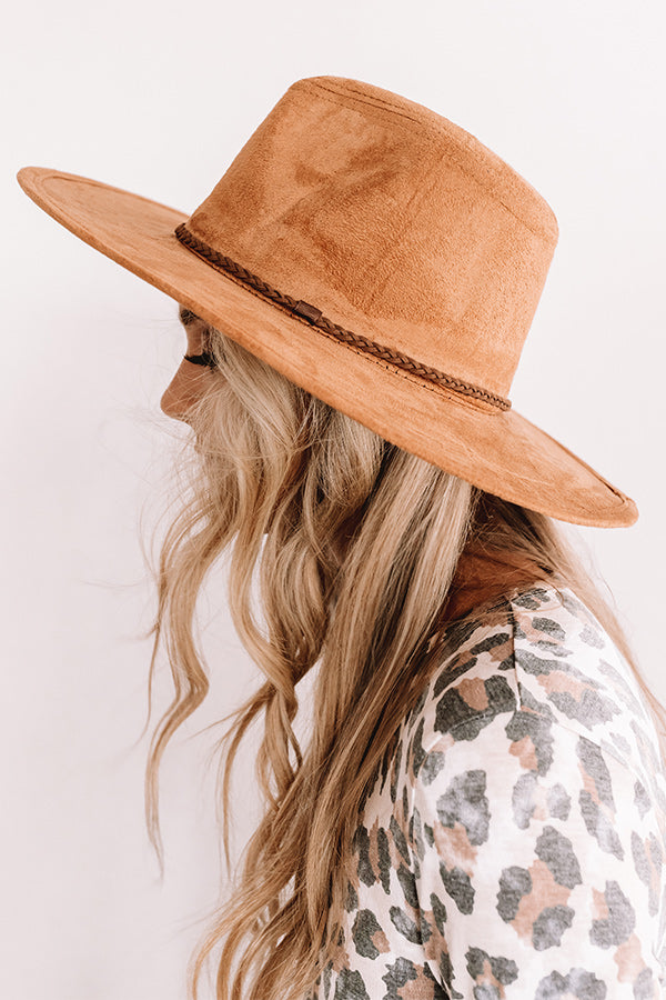 There is no better accessory to accompany you on your "adventure in the Alps" than this brown hat featuring soft faux suede material, a wide stiff brim, and a braided accent strap!