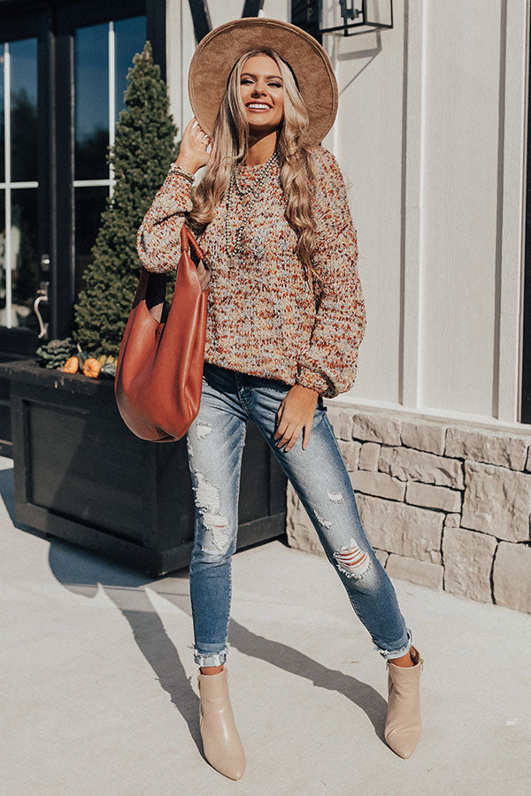When packing for your "adventure in the Alps," don't forget to throw this cold weather essential in your bag! It feature soft lightweight material with colorful popcorn knit accents and texturing, a high rounded neckline, long loose sleeves with fitted cuffs, and a relaxed silhouette that falls into a straight hemline! This adorable sweater can be styled with some distressed ankle skinnies, a matching tote, and a neutral bootie and faux suede hat, or it can be worn with some wine colored flares and "The Jess Faux Leather Heel in Warm Taupe!" Measurements