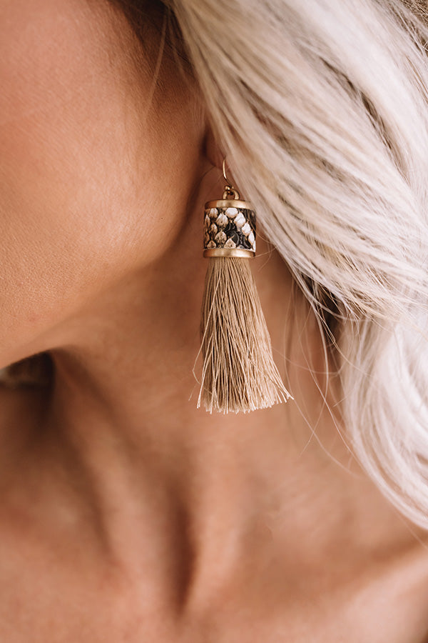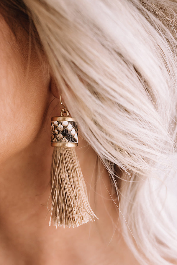 Afterglow Tassel Snake Print Earrings in Taupe