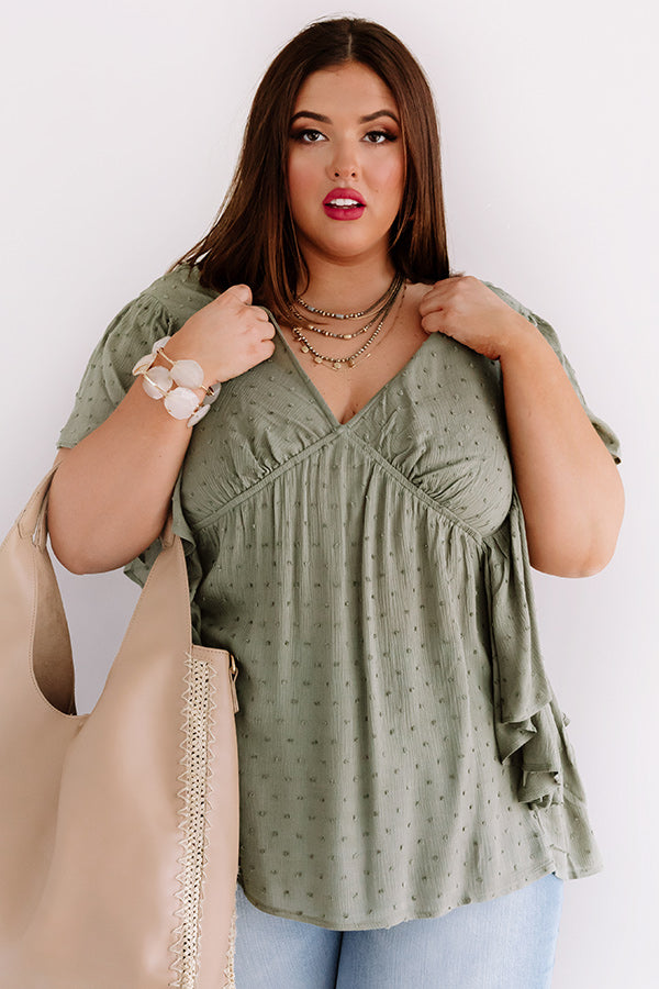 Ahead Of The Curve Babydoll Top In Olive Curves