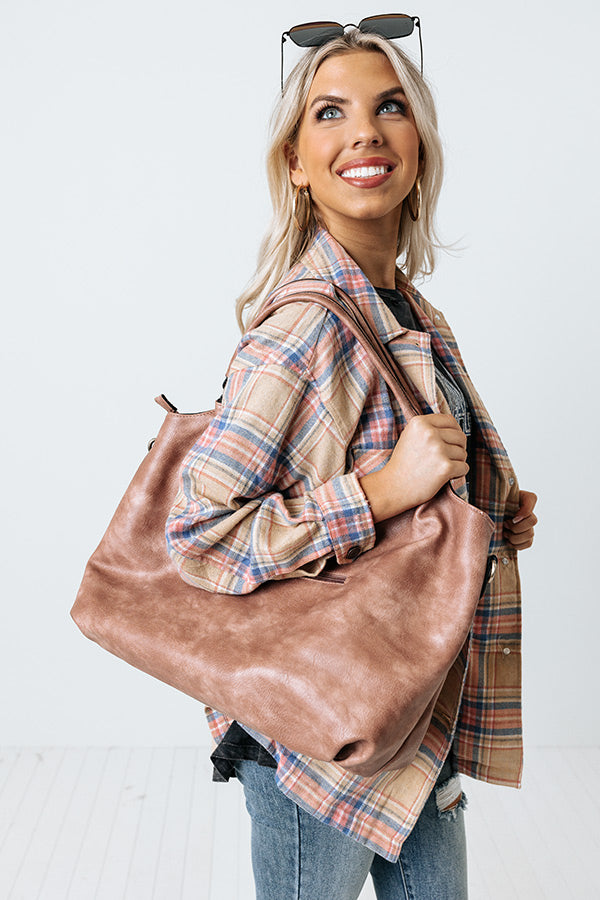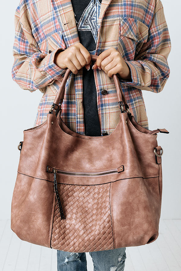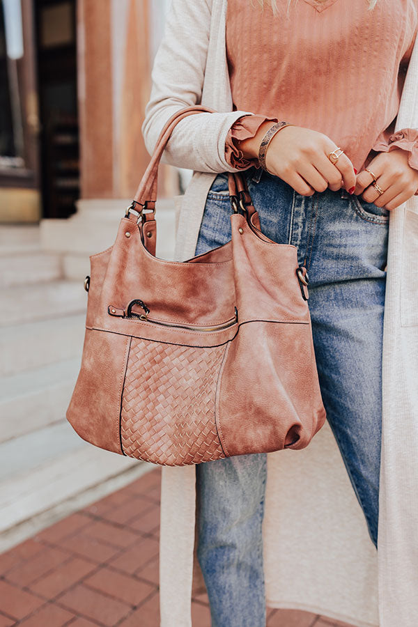 You will be ahead of the times when you complete your look with this timeless blush colored tote featuring sleek faux leather material with accent texturing on the front, two handles, a zip closure pocket on the back, a removable and adjustable shoulder strap, and a spacious fully lined interior with a zip closure and additional pocket! PLUS, this cutie comes with a matching wallet!