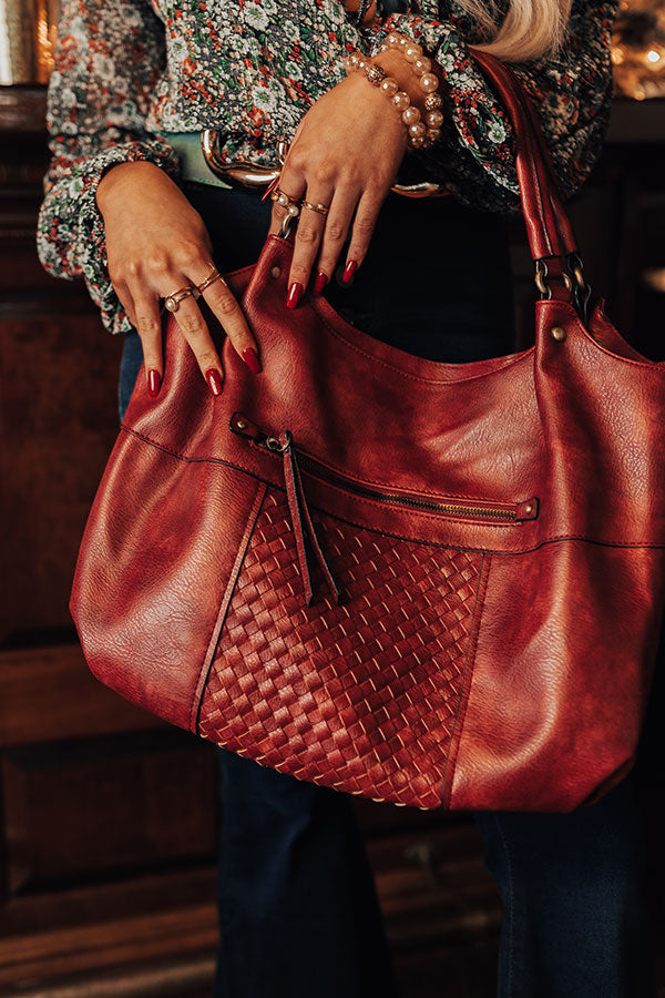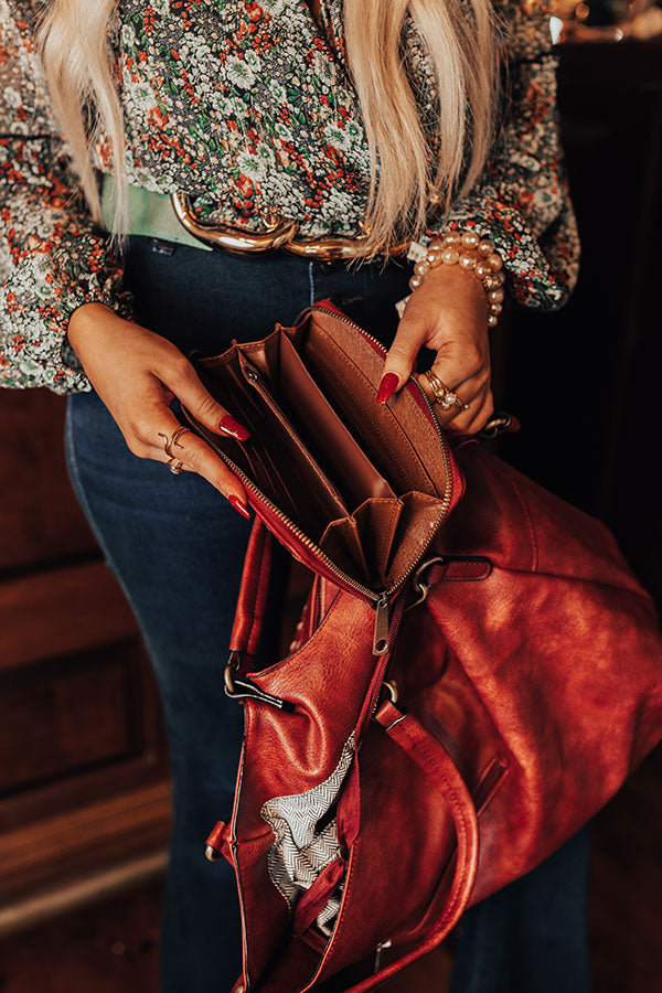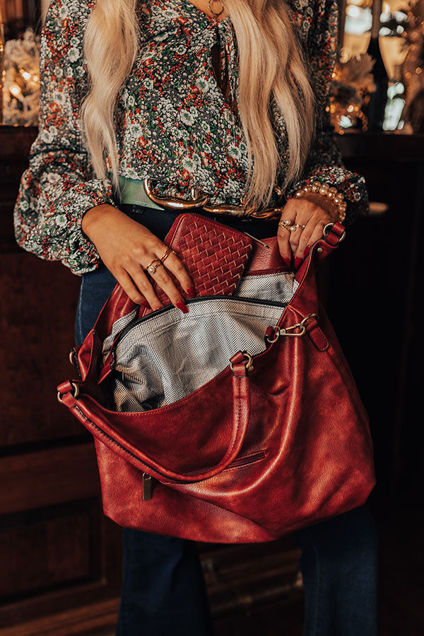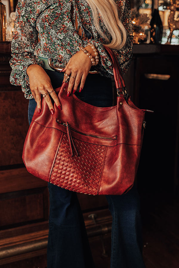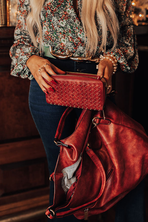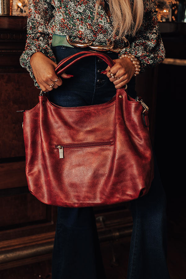 You will be ahead of the times when you complete your look with this timeless wine colored tote featuring sleek faux leather material with accent texturing on the front, two handles, a zip closure pocket on the back, a removable and adjustable shoulder strap, and a spacious fully lined interior with a zip closure and additional pocket! PLUS, this cutie comes with a matching wallet!