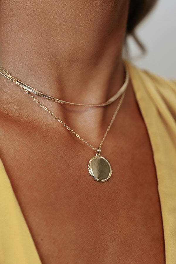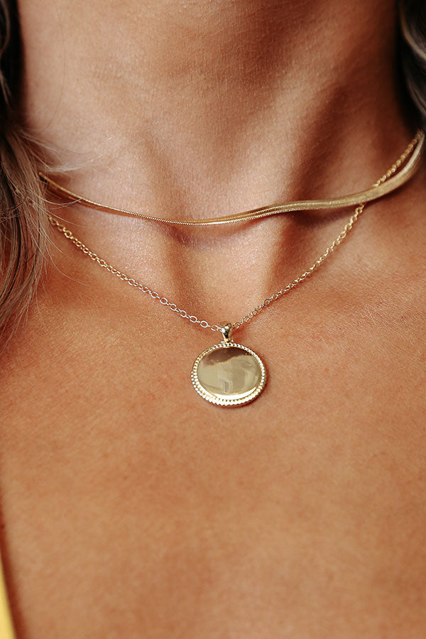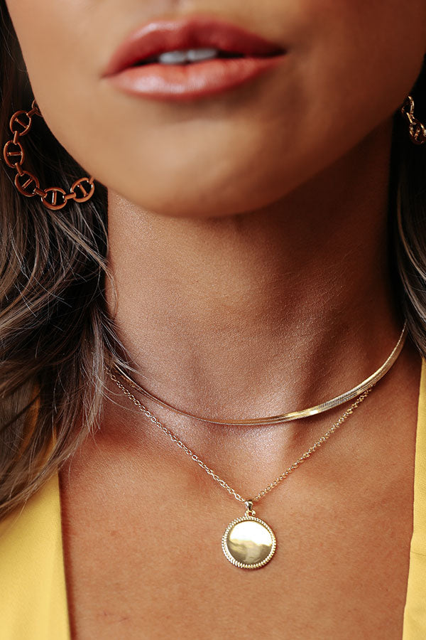 Add a subtle shine to any look with our adorable gold 'Alamo Kisses Necklace' featuring a snake chain choker and a longer daintier chain with a circle pendant!