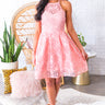 Sweeten up your fancy florals collection with this blooming beauty! This laser cut beauty has a halter neckline, fitted princess cut bodice & a twirl-worthy flared skirt. Style with strappy heels & a statement earring for a stunning look that's sure to steal the spotlight!