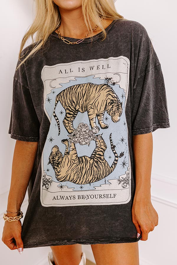 - An "ALL IS WELL ALWAYS BE YOURSELF" tiger graphic design on the front